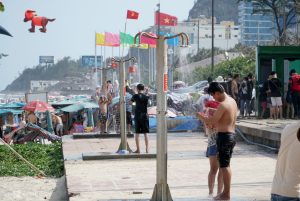 Các trụ tắm nước ngọt phục vụ khách vừa được chính quyền TP Vũng Tàu lắp đặt sau khi phá bỏ các công trình tạm, xây trái phép trên khu đất của một doanh nghiệp.